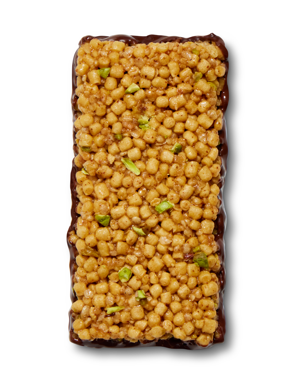 Imagine a creamy pistachio gelato with the benefits of a protein bar. If that sounds too good to be true, drop your spoon and indulge in our Pistachio Chocolate Puff-Crispy Bar.